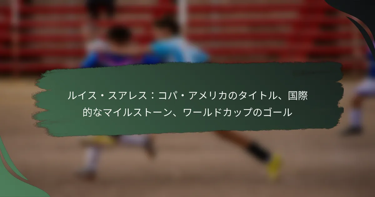 ルイス・スアレスはウルグアイと共にコパ・アメリカのタイトルを複数回獲得しており、トーナメントへの重要な影響を示しています。彼の貢献は、競技の歴史におけるトッププレイヤーの一人としての地位を確立しました。
